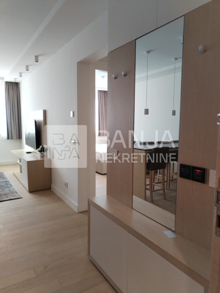 Ovaj funkcionalno organizovan prostor idealan je za parove, poslovne putnike ili male porodice. Apartman je kompletno opremljen modernim nameštajem, ima svetao dnevni boravak, odvojenu kuhinju i prostranu spavaću sobu, uz sve praktične sadržaje koji omogućavaju osećaj doma daleko od kuće.