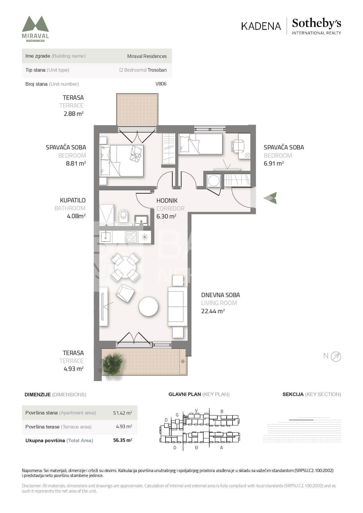 | Osmi sprat | 806 | 56,35 m2 | trosoban | Pogledaj | |