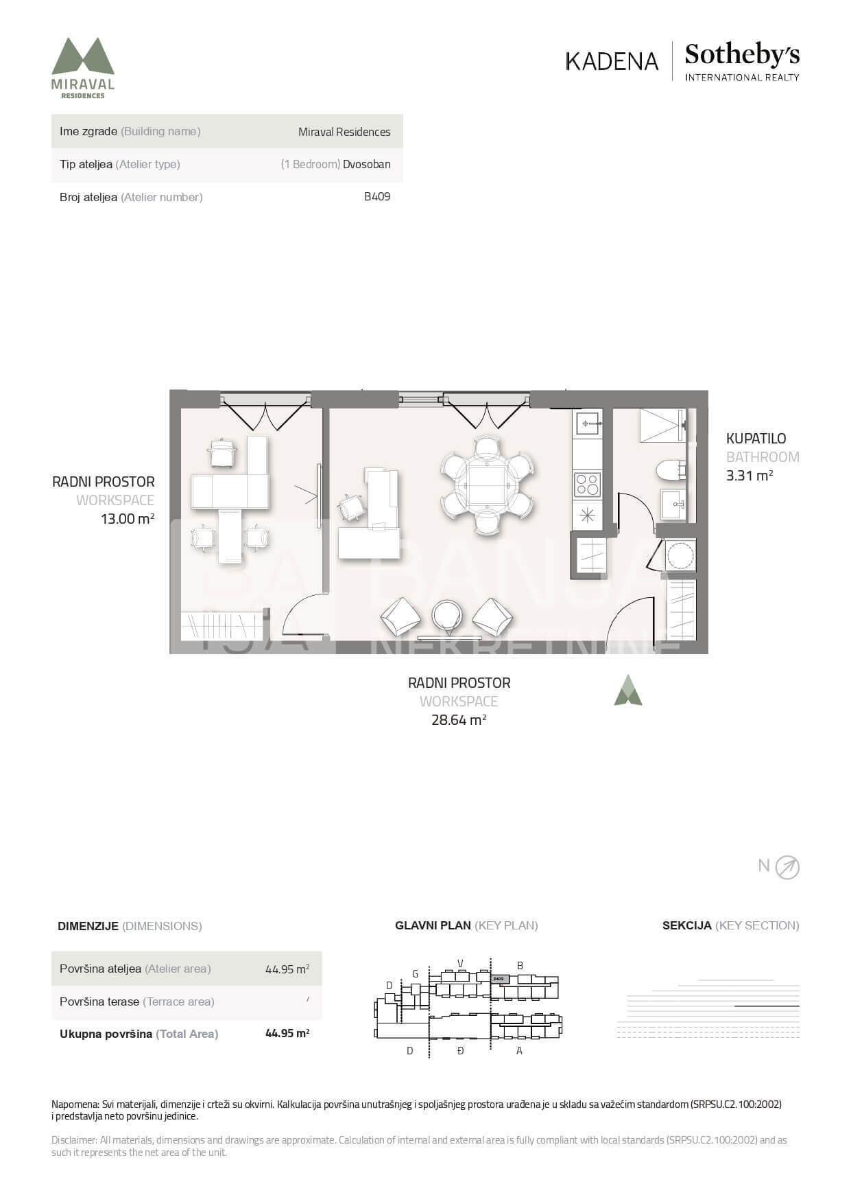 | Četvrti sprat | 409 | 44,95 m2 | dvosoban | Pogledaj | |