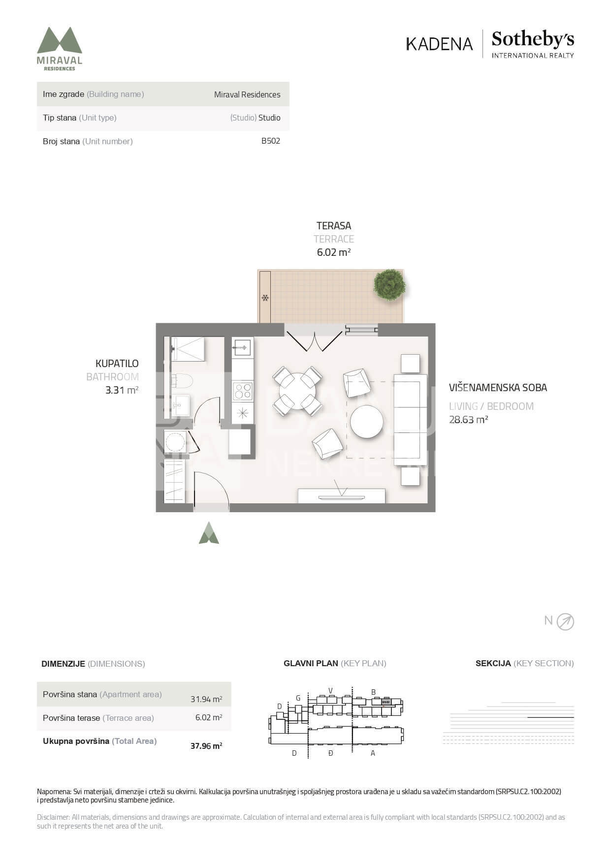 | Peti sprat | 502 | 37,96 m2 | garsonjera | Pogledaj | |