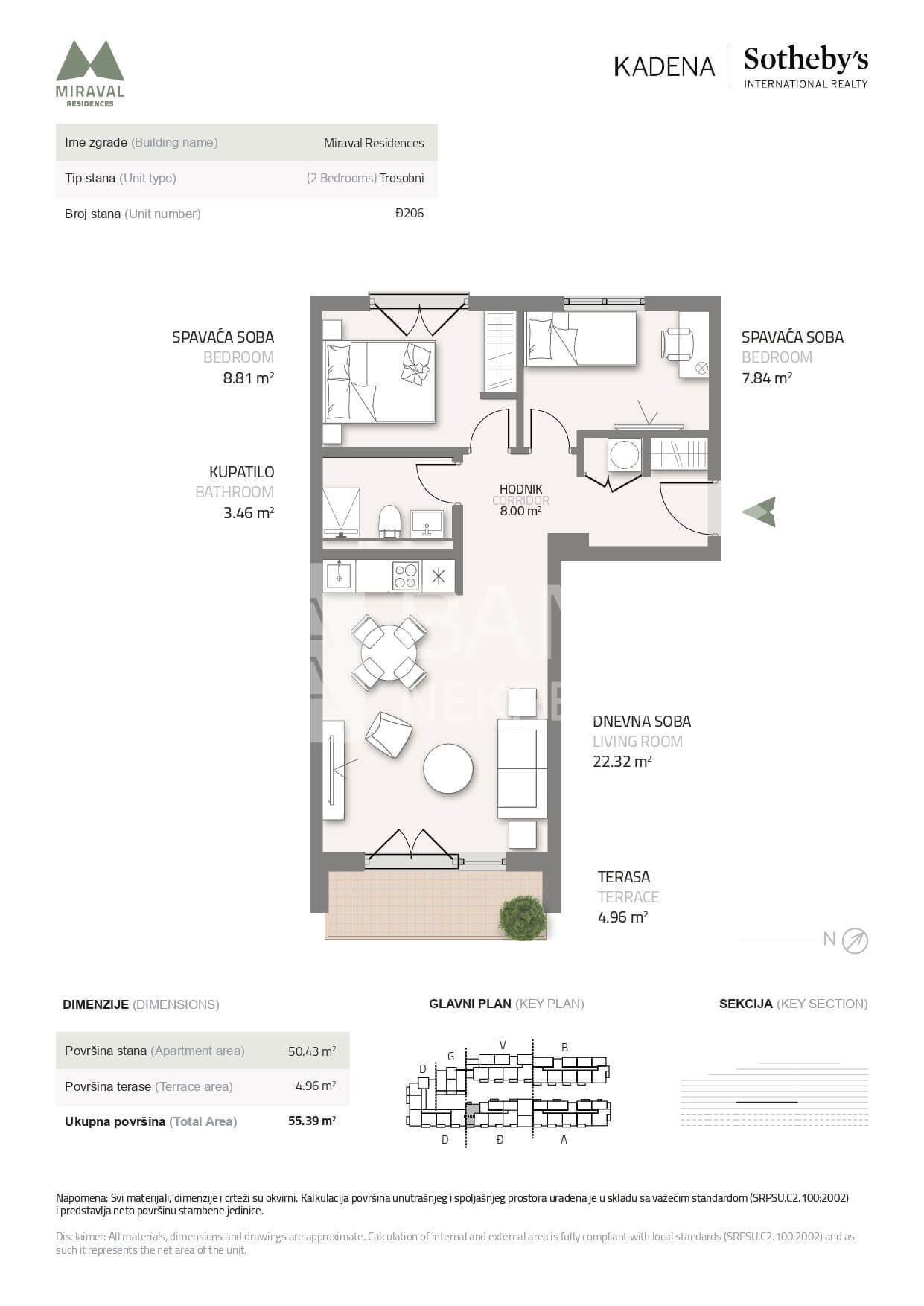 | Drugi sprat | 206 | 55,39 m2 | dvosoban | Pogledaj | |