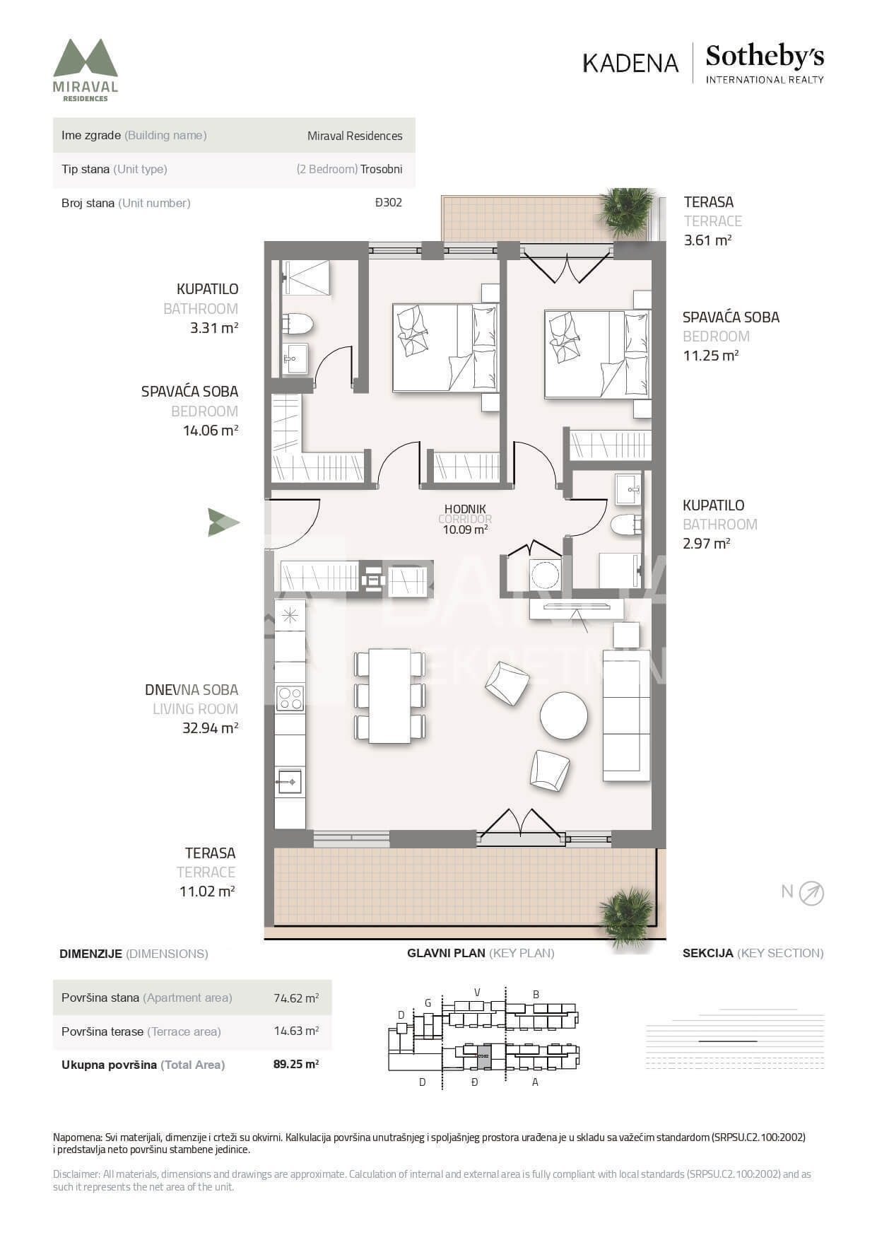 | Treći sprat | 302 | 89,25 m2 | trosoban | Pogledaj | |