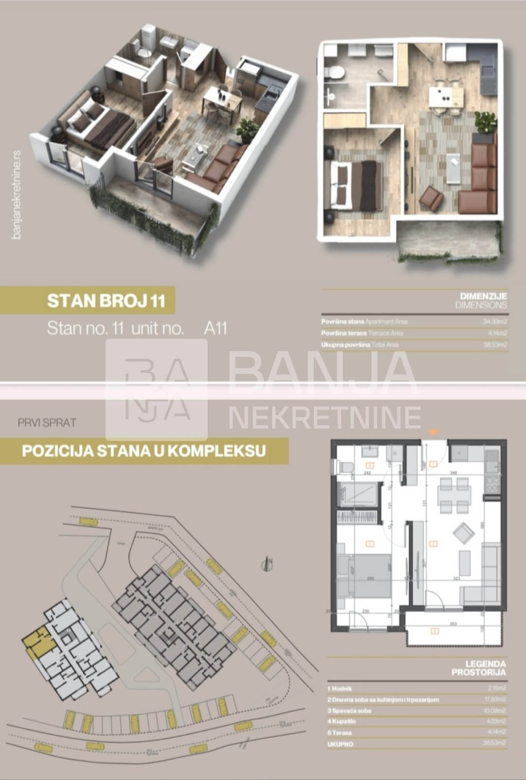 | Prvi sprat | 11 | 38,53 m2 | dvosoban | Pogledaj | |