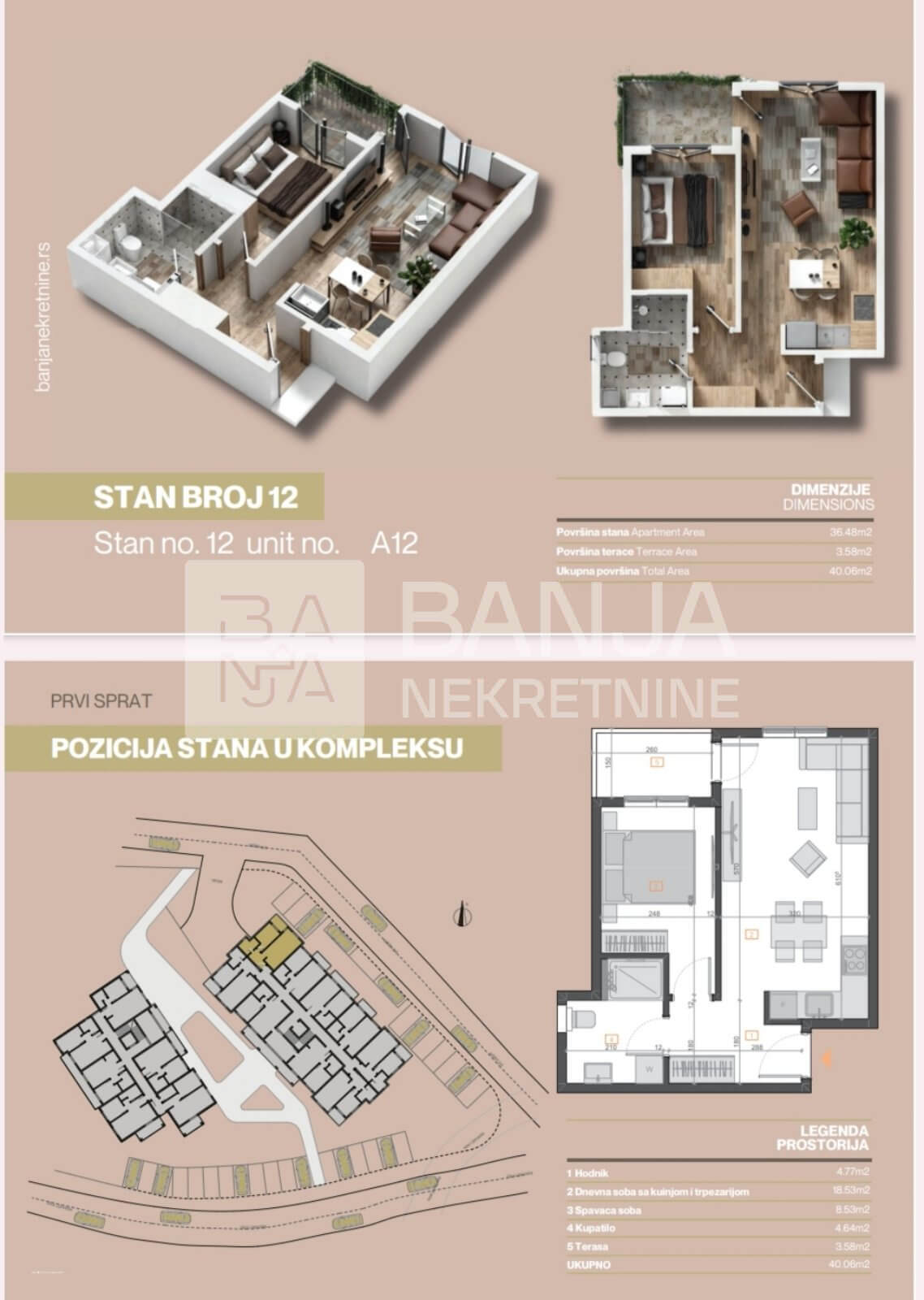 | Prvi sprat | 12 | 40,06 m2 | dvosoban | Pogledaj | |