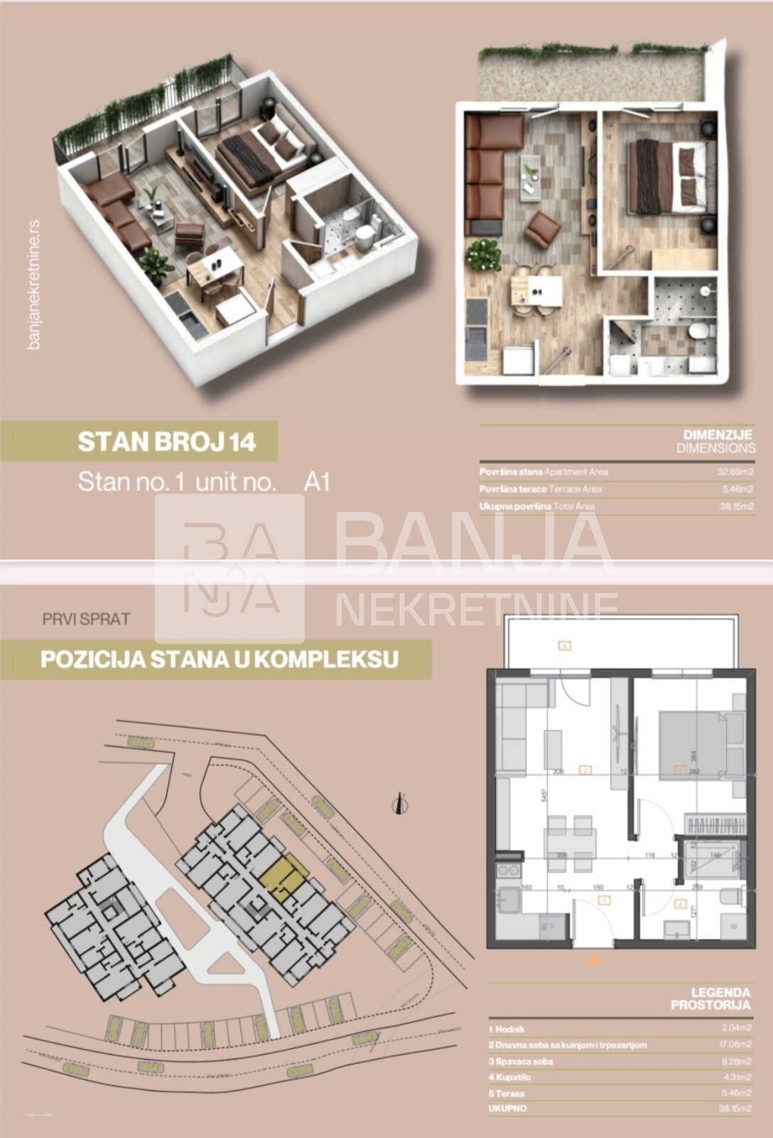 | Prvi sprat | 14 | 38,17 m2 | dvosoban | Pogledaj | |