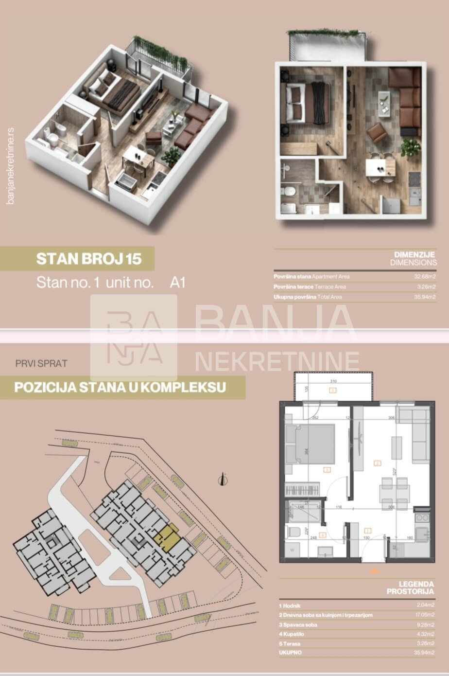 | Prvi sprat | 15 | 35,92 m2 | dvosoban | Pogledaj | |