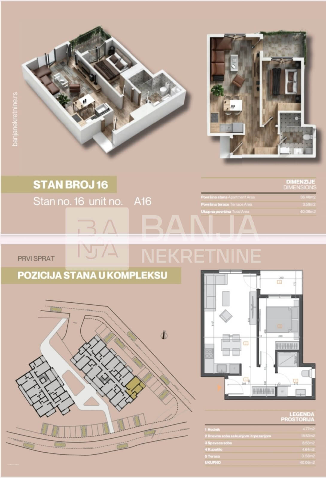 | Prvi sprat | 16 | 40,06 m2 | dvosoban | Pogledaj | |