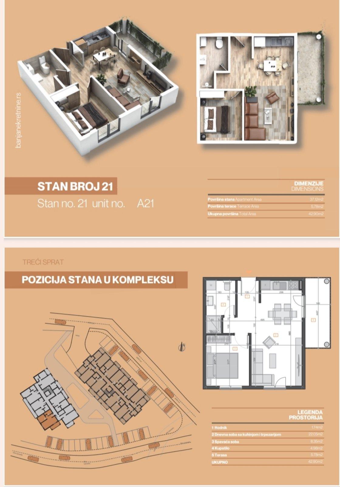 | Treći sprat | 21 | 43,07 m2 | dvosoban | Pogledaj | |
