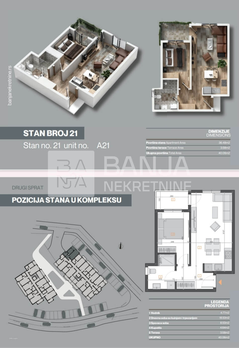 | Drugi sprat | 21 | 40,06 m2 | dvosoban | Pogledaj | |