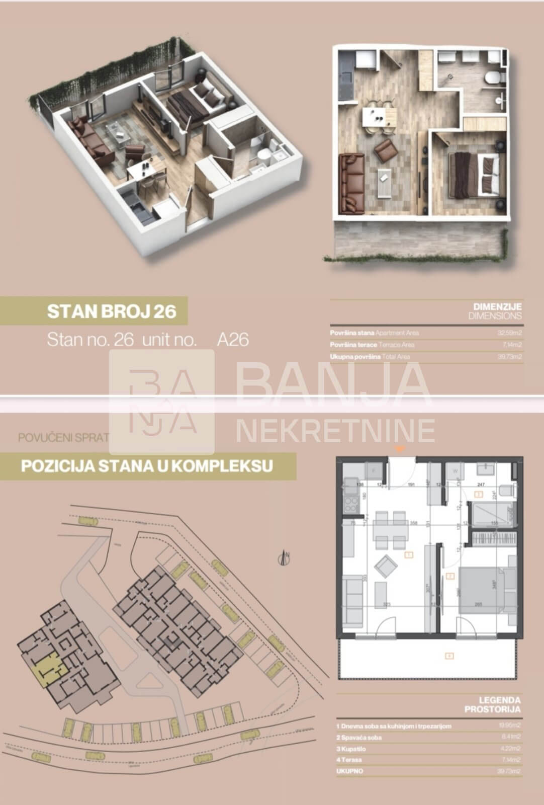 | Povučeni sprat | 26 | 39,73 m2 | dvosoban | Pogledaj | |