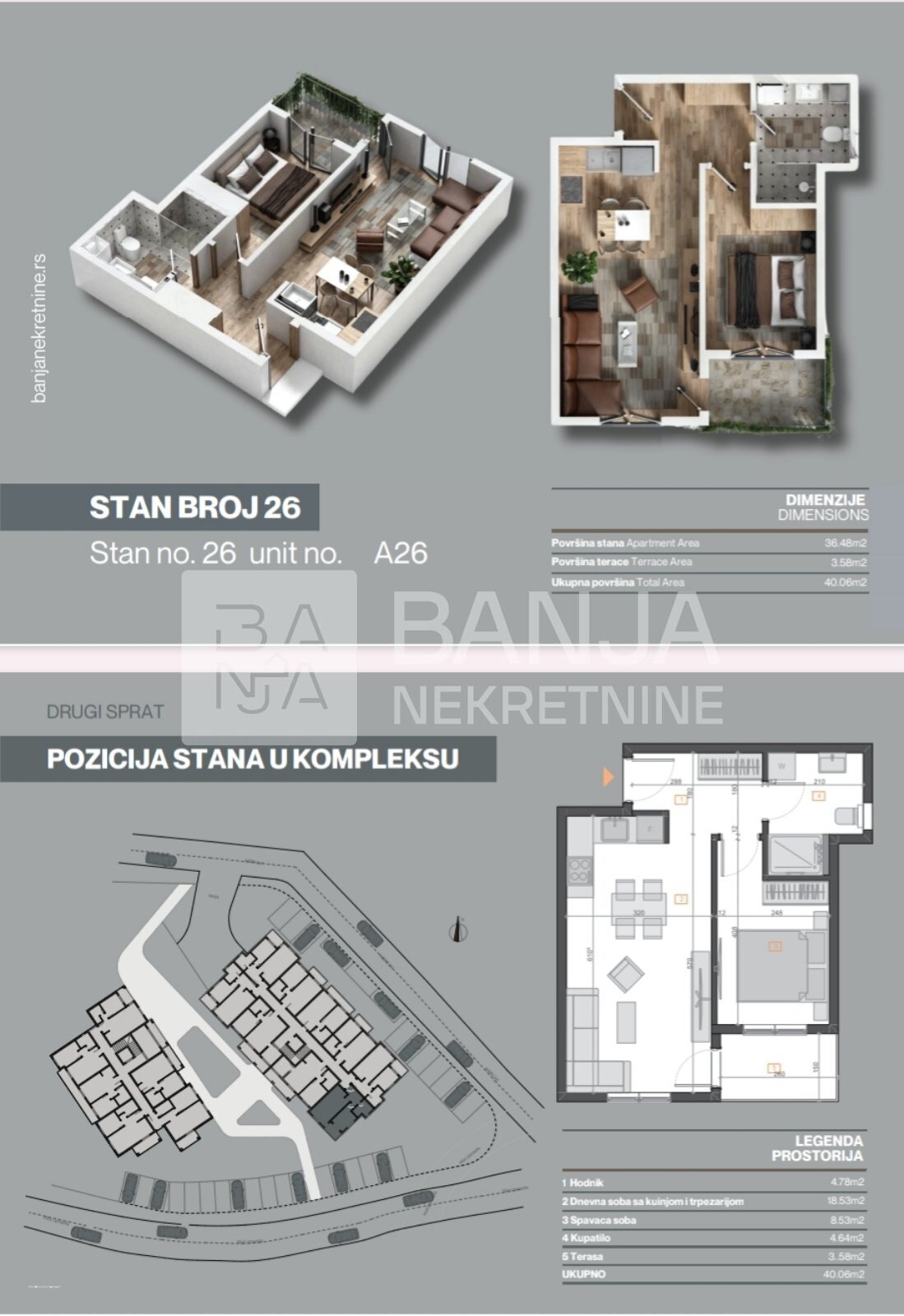 | Drugi sprat | 26 | 40,06 m2 | dvosoban | Pogledaj | |