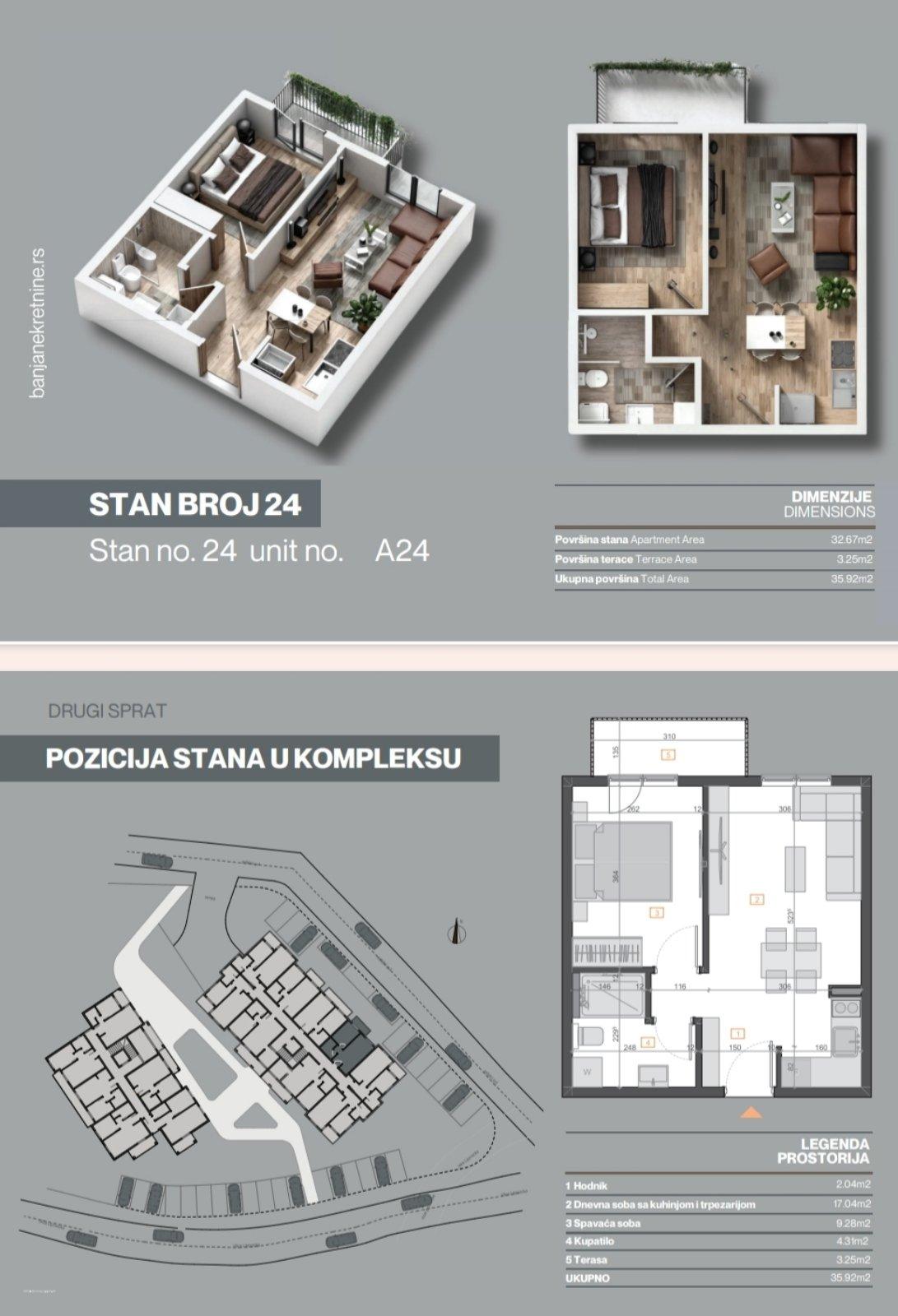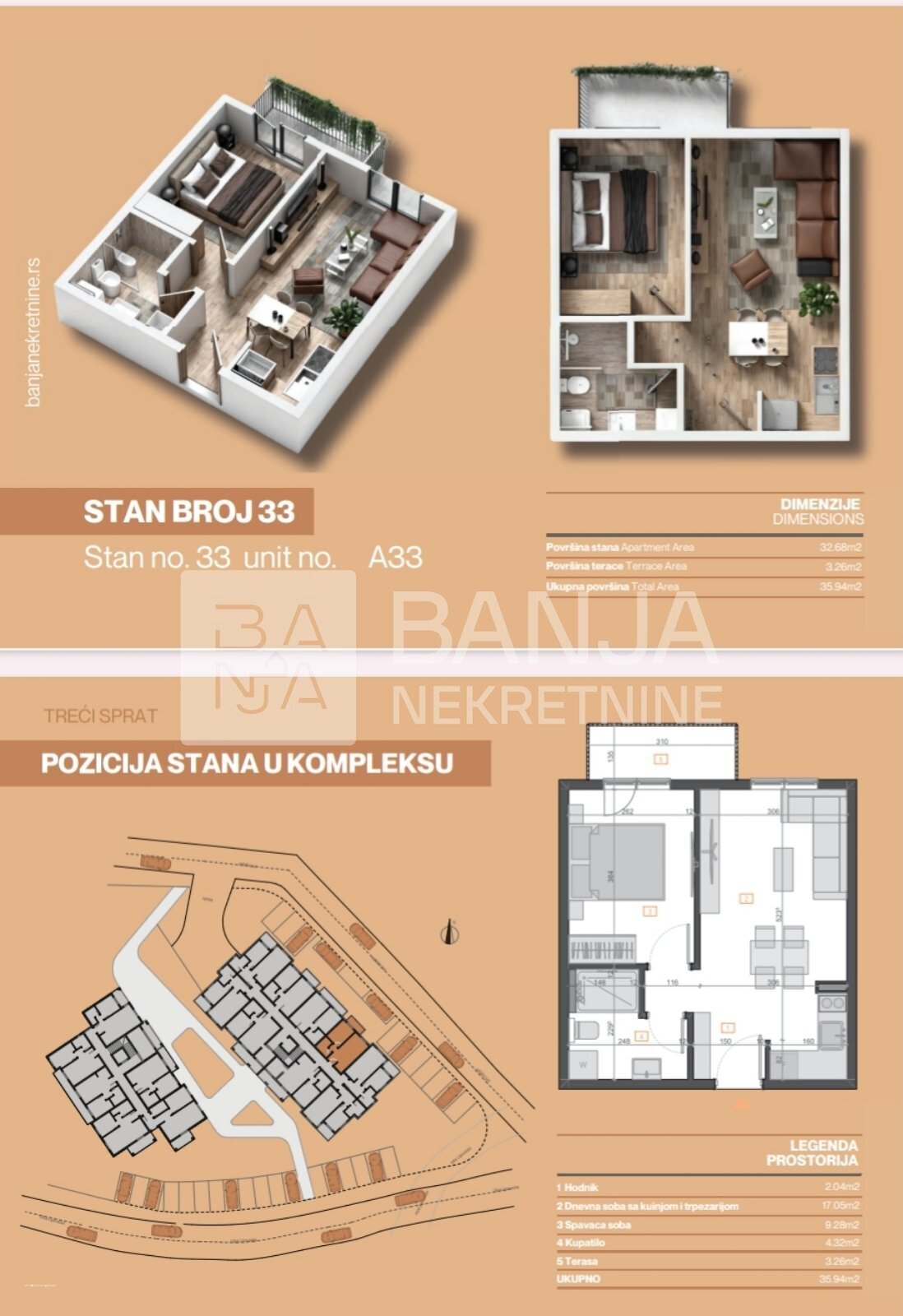 | Treći sprat | 33 | 35,92 m2 | dvosoban | Pogledaj | |