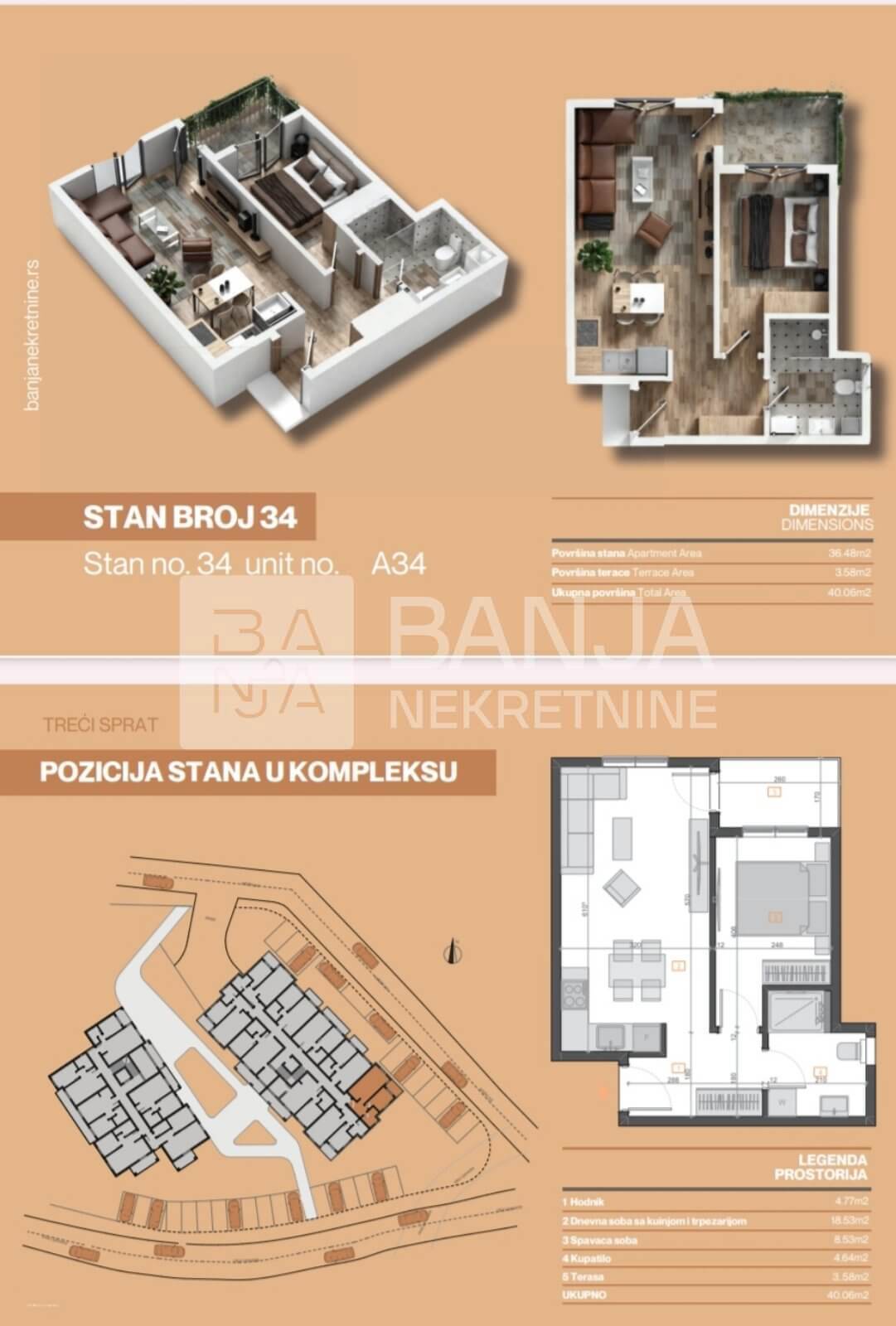 | Treći sprat | 34 | 40,06 m2 | dvosoban | Pogledaj | |
