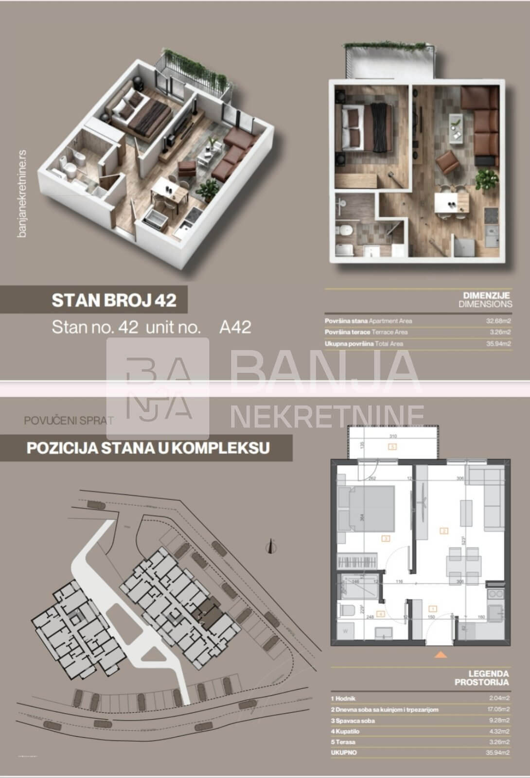 | Povučeni sprat | 42 | 35,95 m2 | dvosoban | Pogledaj | |