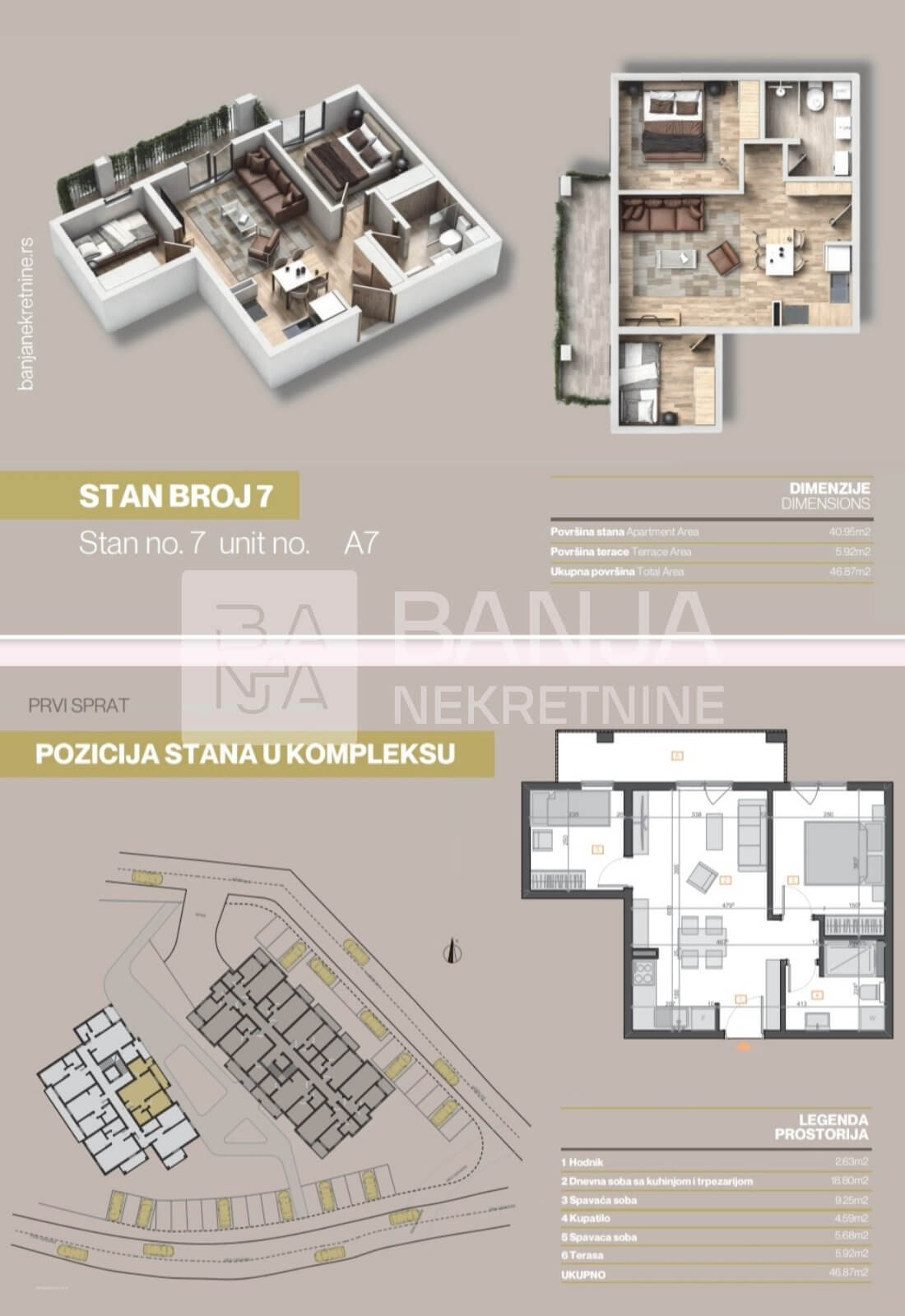 | Prvi sprat | 7 | 46,87 m2 | dvoiposoban | Pogledaj | |
