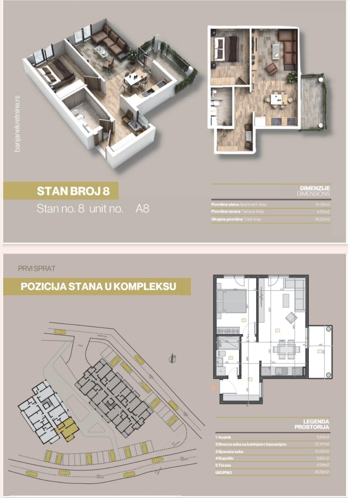| Prvi sprat | 8 | 45,55 m2 | dvosoban | Pogledaj | |