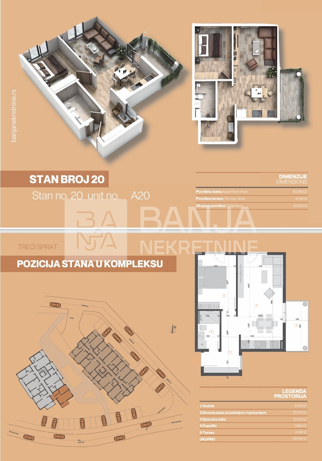 | Treći sprat | 20 | 45,55 m2 | dvosoban | Pogledaj | |