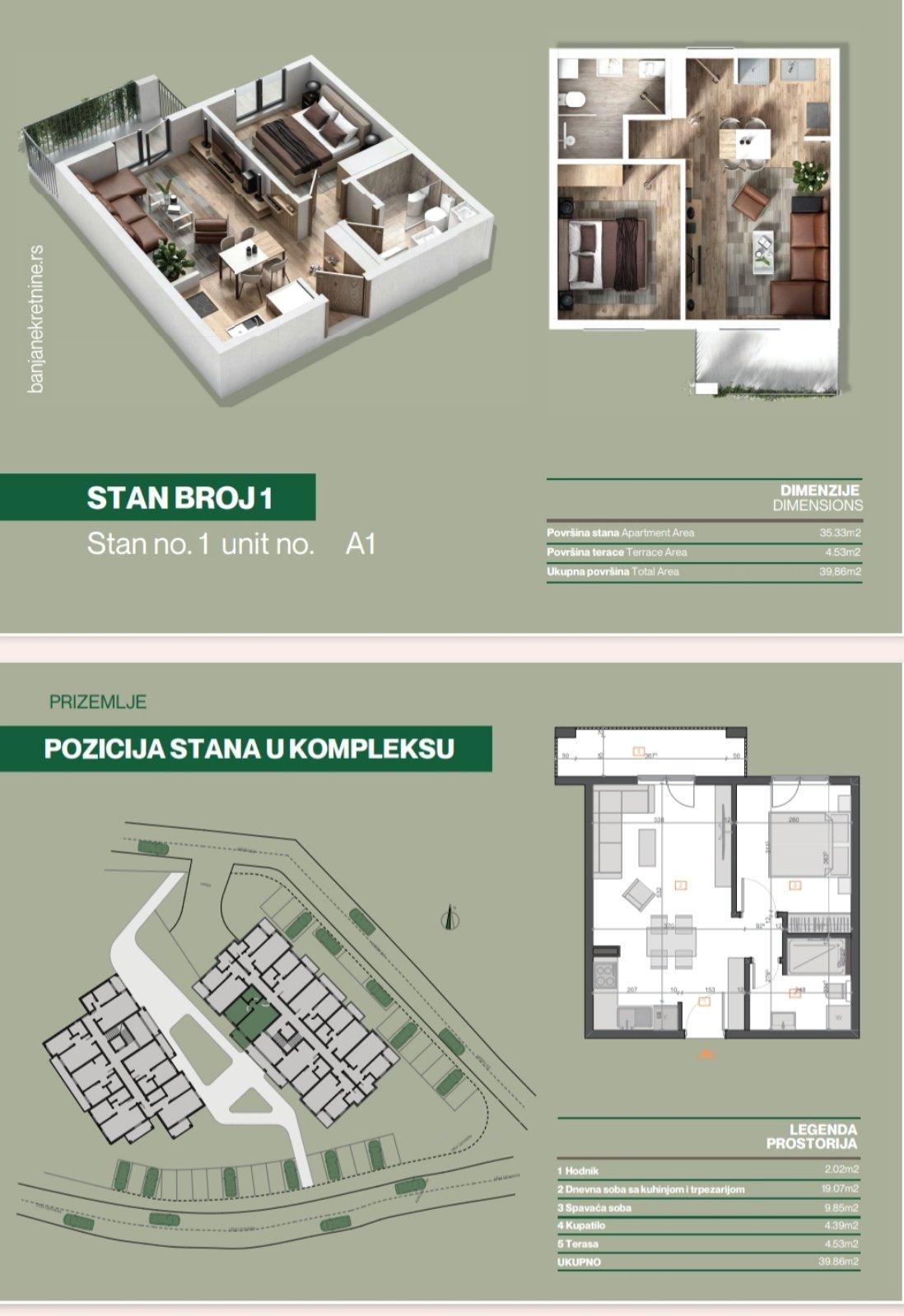 Stambeni kompleks najviše klase, namenjen onima koji znaju da prepoznaju pravu vrednost. Spoj arhitektonske elegancije, besprekornog dizajna i najviših standarda gradnje. Ne pristajte na kompromise u kupovini Vaše nekretnine, odaberite najbolje i jedinstveno rešenje. Postanite vlasnik stana u kompleksu koji se jasno izdvaja od drugih kako u stilu gradnje, tako i po spoljnom uređenju. Ovo je šansa za kupovinu nekretnine koja je u samom centru na idealnoj lokaciji, udaljena 50m od parka, sa blizinom izvora Slatina i hotela sa mogućnošću korišćenja usluga otvorenog i zatvorenog bazena koja zaokružuje turistički aranžman sa kompletnom ponudom.
