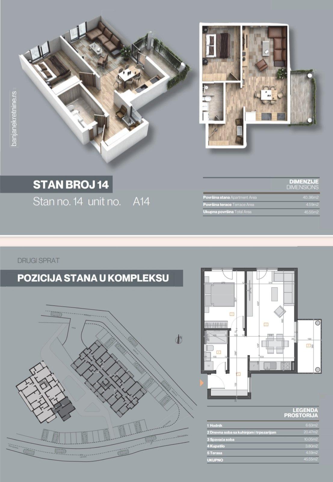 | Drugi sprat | 14 | 45,56 m2 | dvosoban | Pogledaj | |