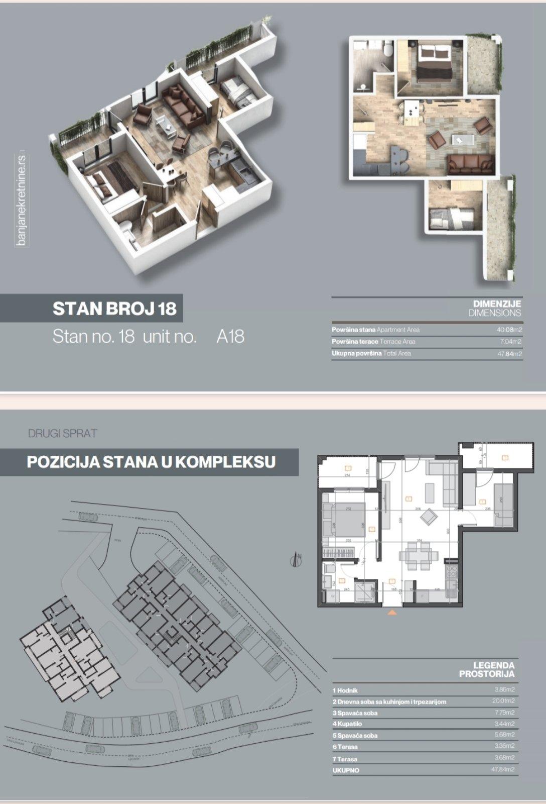 | Drugi sprat | 18 | 47,84 m2 | dvosoban | Pogledaj | |