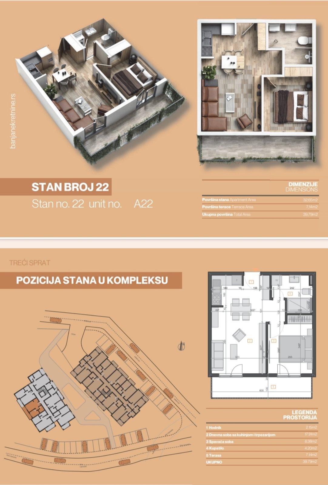 | Treći sprat | 22 | 39,79 m2 | dvosoban | Pogledaj | |