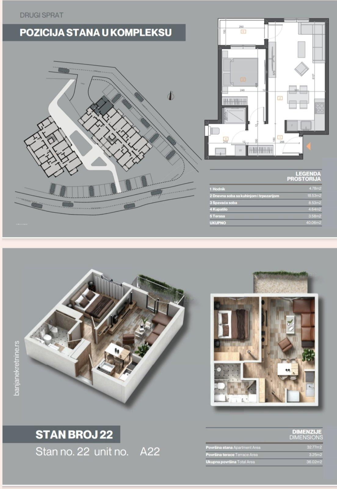 | Drugi sprat | 22 | 36,02 m2 | dvosoban | Pogledaj | |