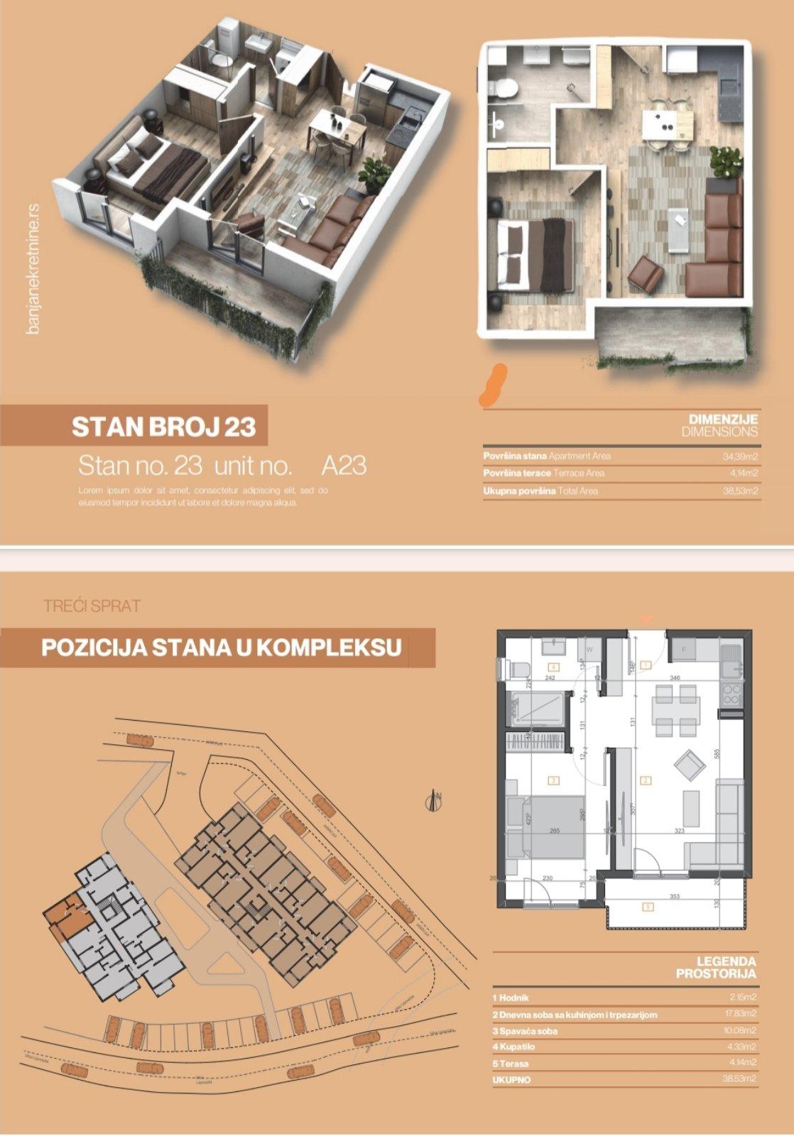 | Treći sprat | 23 | 38,53 m2 | dvosoban | Pogledaj | |
