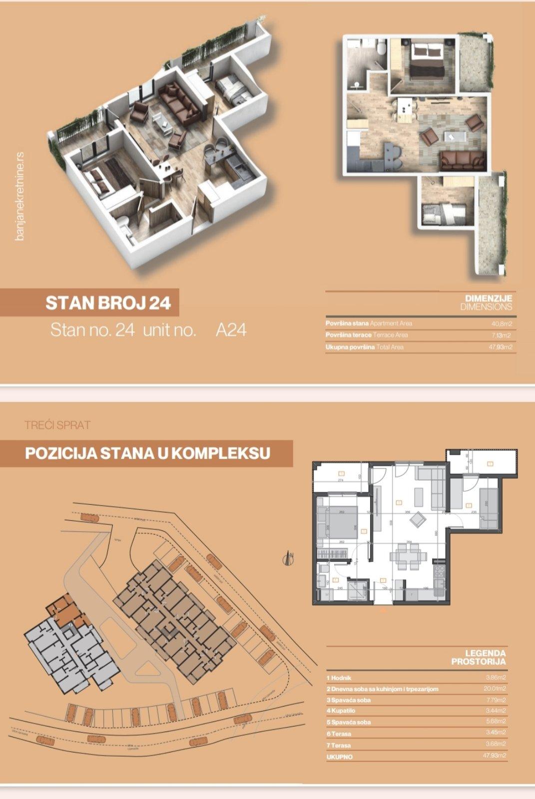 | Treći sprat | 24 | 47,93 m2 | dvosoban | Pogledaj | |