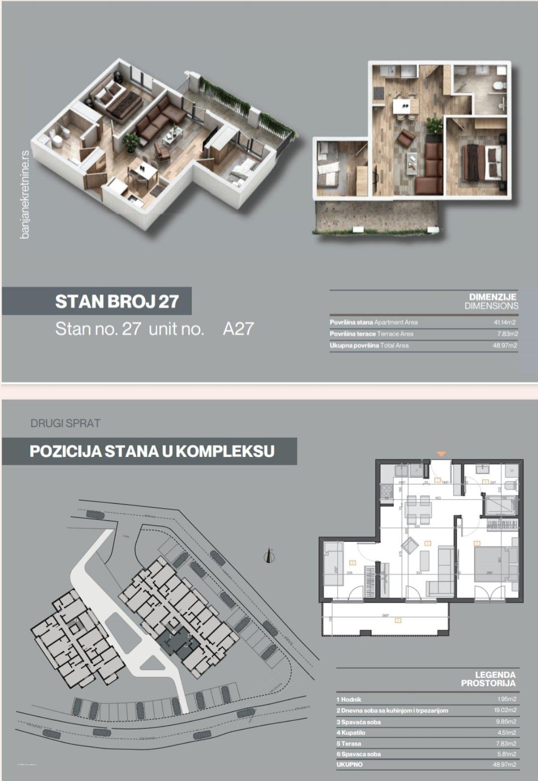 | Drugi sprat | 27 | 48,97 m2 | dvosoban | Pogledaj | |