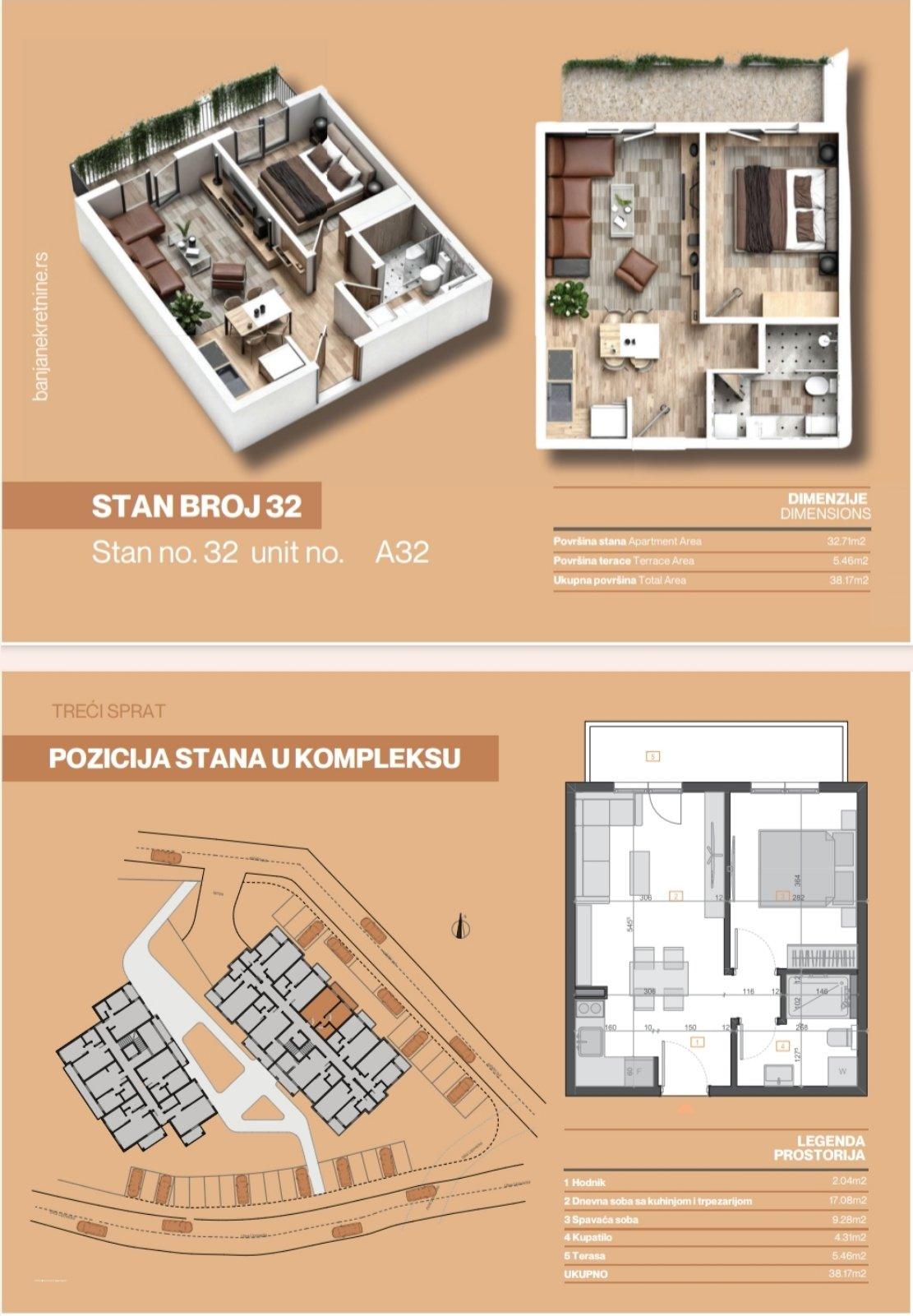 | Treći sprat | 32 | 38,17 m2 | dvosoban | Pogledaj | |
